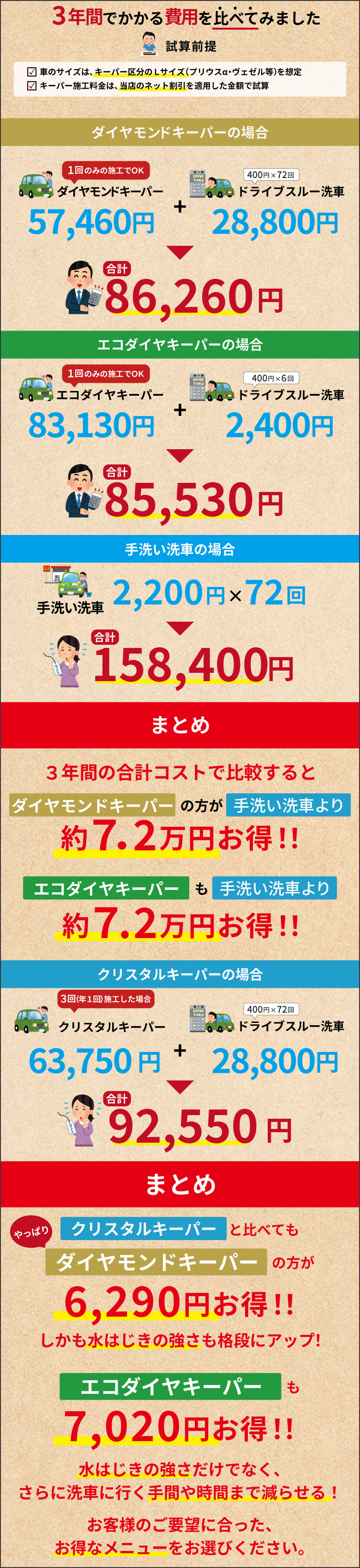 カーディーラーや車販売店のコーティング料金より断然お得!