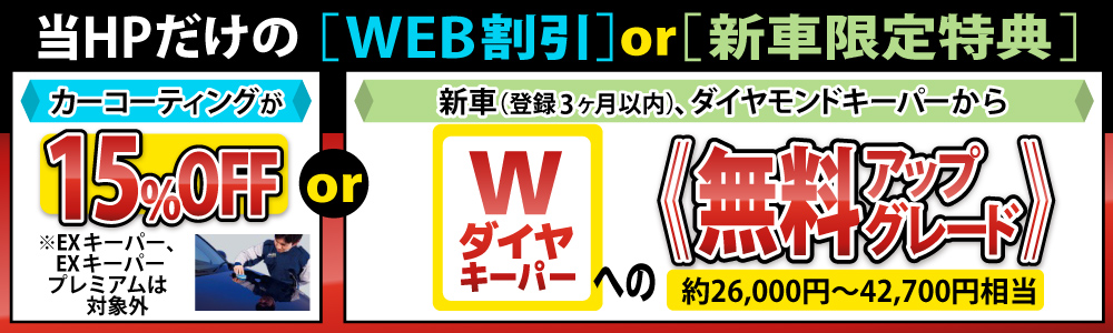 | 特徴 | レジン被膜に、高密度ガラス皮膜を二層重ねた、三重構造。 ダイヤモンドキーパー同様に空気乾燥させつつ、厚いガラスの層が2倍あることで、ツヤや汚れにくさが更にアップ。 もちろん水シミ、紫外線もしっかりガード。 |